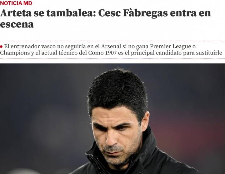 不夺冠就下课?曝阿尔特塔再被逆转将遭解雇,法布雷加斯有望接班